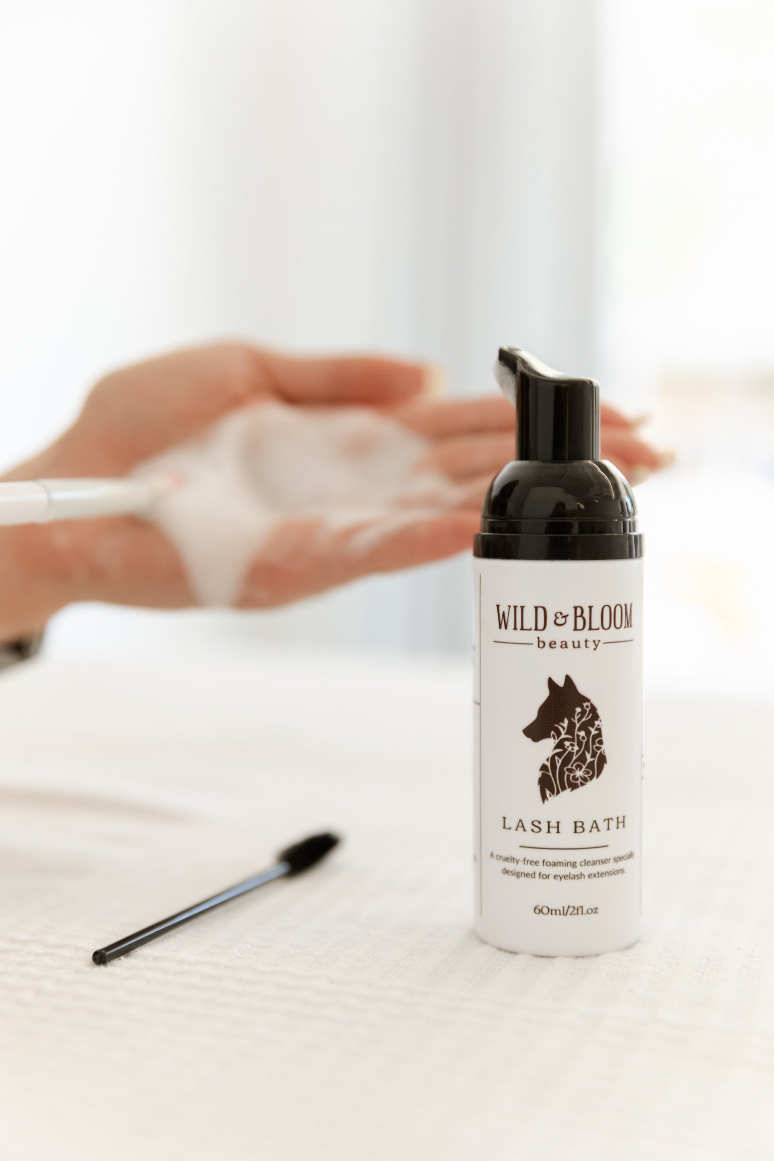 This vegan-friendly foaming Lash Bath will keep your lashes free of oil, debris, and other proteins or impurities. A small pump of cleanser and cleansing brush will keep your retention on point.